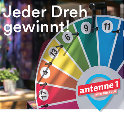 Zusammen mit Hitradio antenne 1 heißt es: Drehen, gewinnen, freuen!